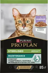 Корм Pro Plan для стерилизованных кошек и кастрированных котов 85г индейка в соусе