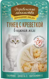 Деревенские лакомств Влажный корм (пауч) для кошек, тунец с креветкой в нежном желе, 70 гр.