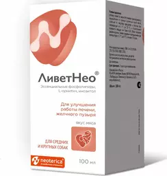 Neoterica Ливетнео Кормовая добавка для улучшения работы печени, желчного пузыря у средних и крупных собак, 100 мл
