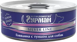 Четвероногий Гурман Silver line Влажный корм (консервы) для собак, с говядиной и тунцом, 100 гр.