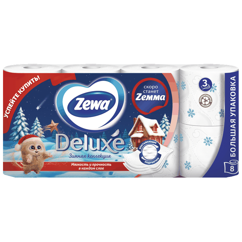 Туалетная бумага Zewa Deluxe 3 слоя, 8 рулонов