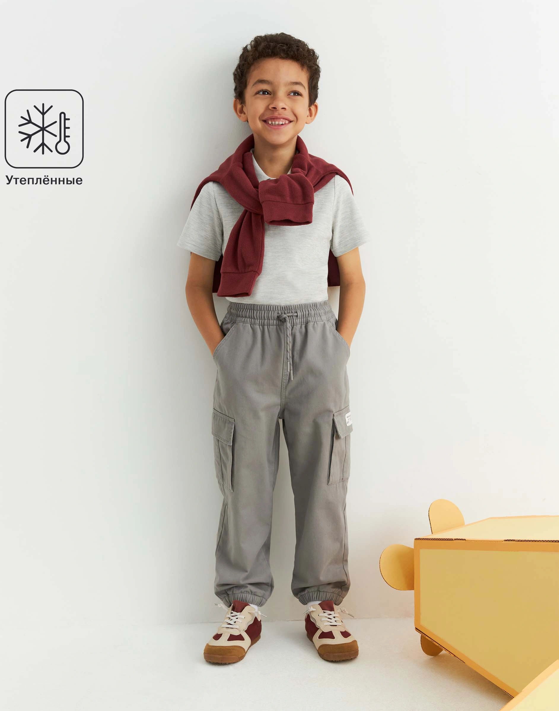 Серые утеплённые брюки Cargo Jogger из твила для мальчика Bwb002019-1
