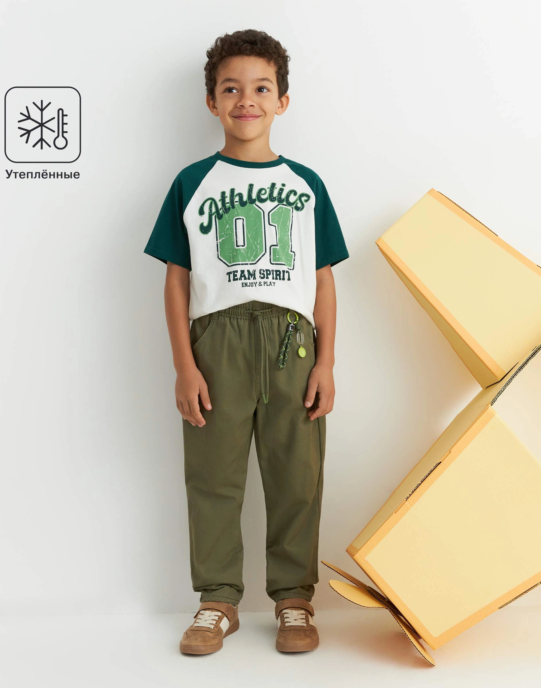Хаки утеплённые брюки Loose с брелоком для мальчика Bwb002018-2