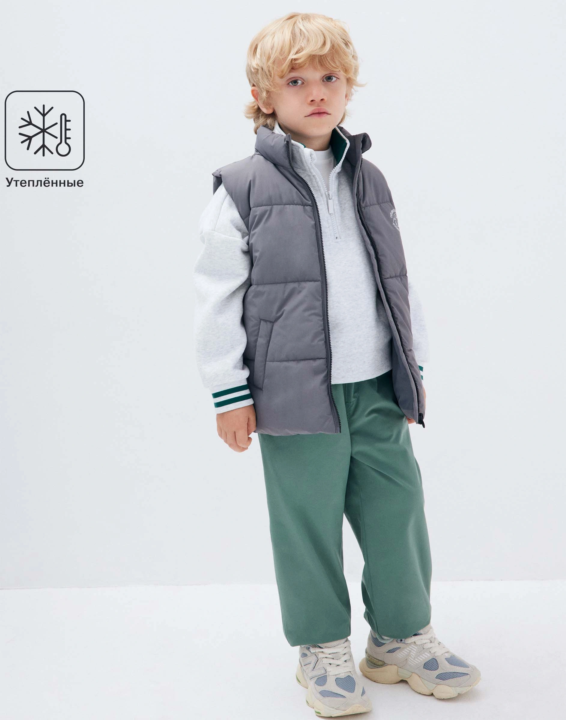 Хаки утеплённые брюки для мальчика Bow002284-2