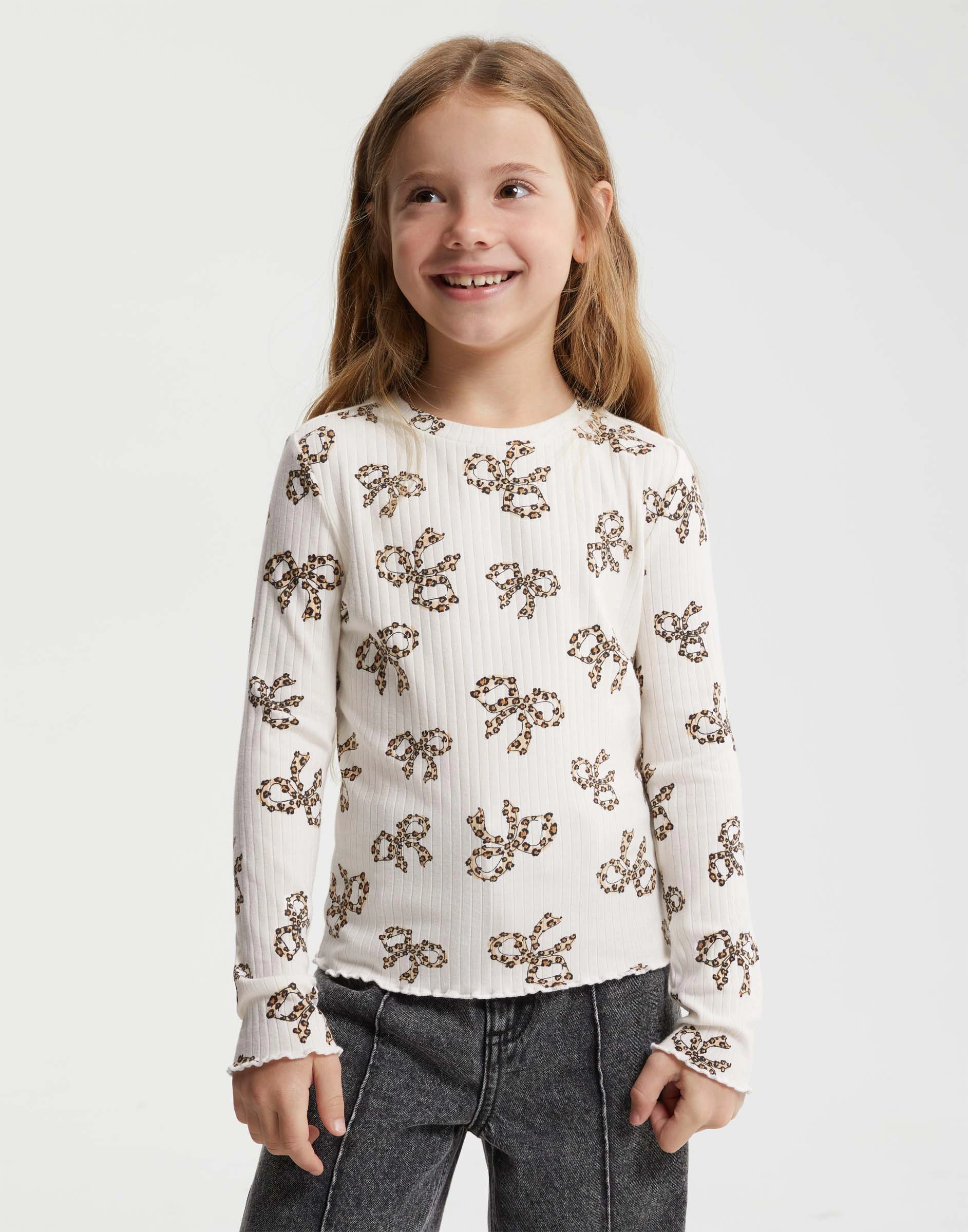 Молочный лонгслив в рубчик с волнистым краем для девочки Gkt027091-2