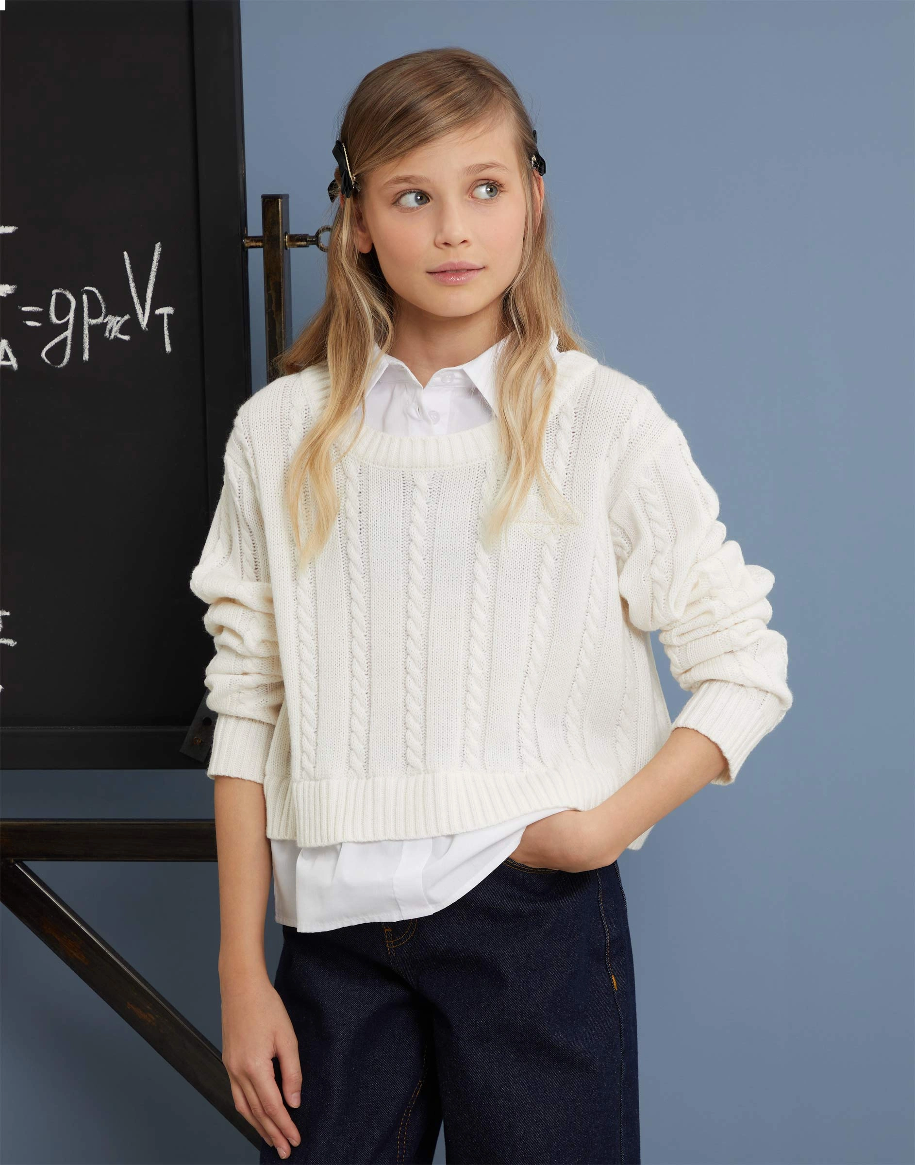 Молочный укороченный джемпер с воротником и вышивкой Gsw007827-1