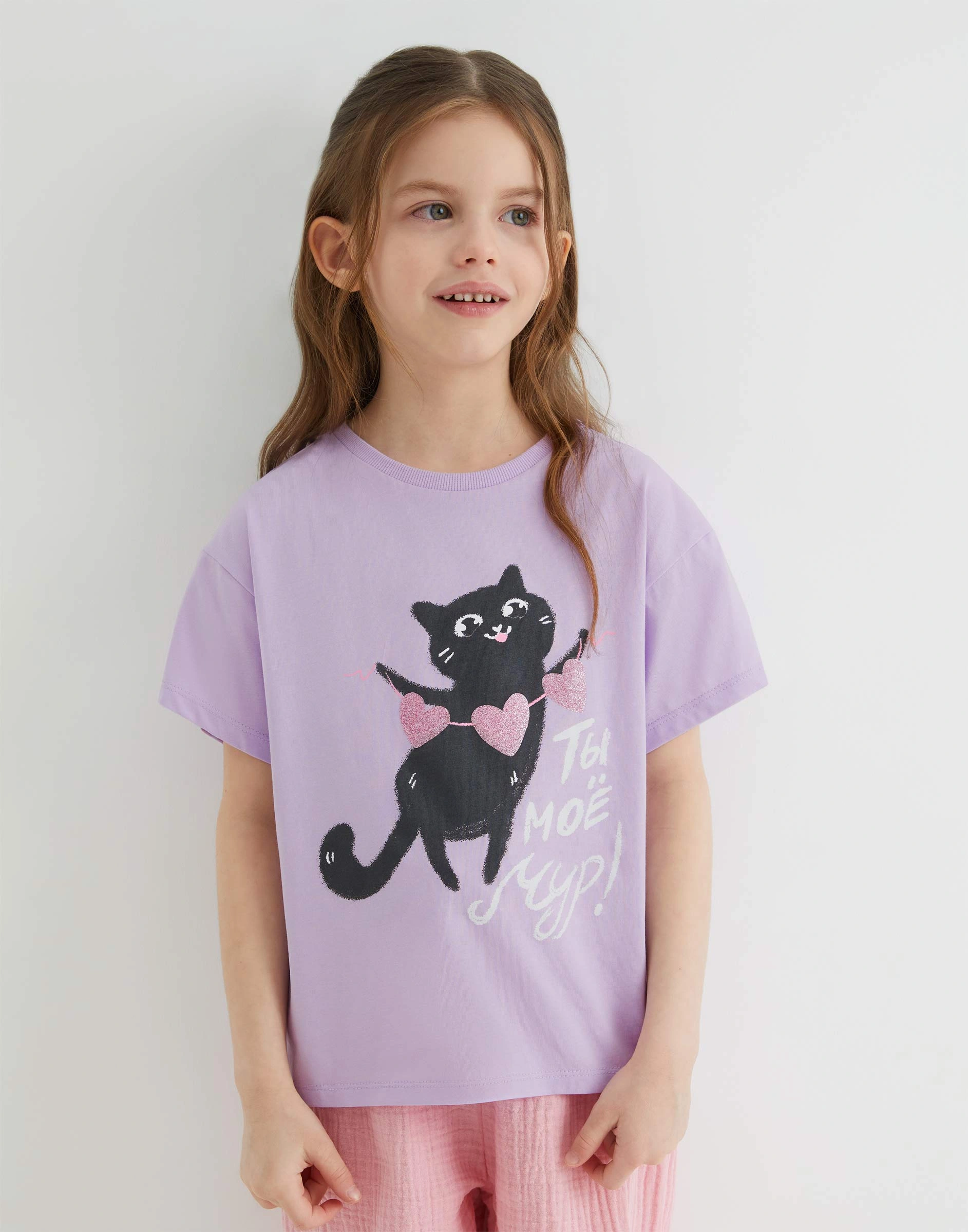 Сиреневая футболка oversize с русской надписью для девочки Gkt028199-1