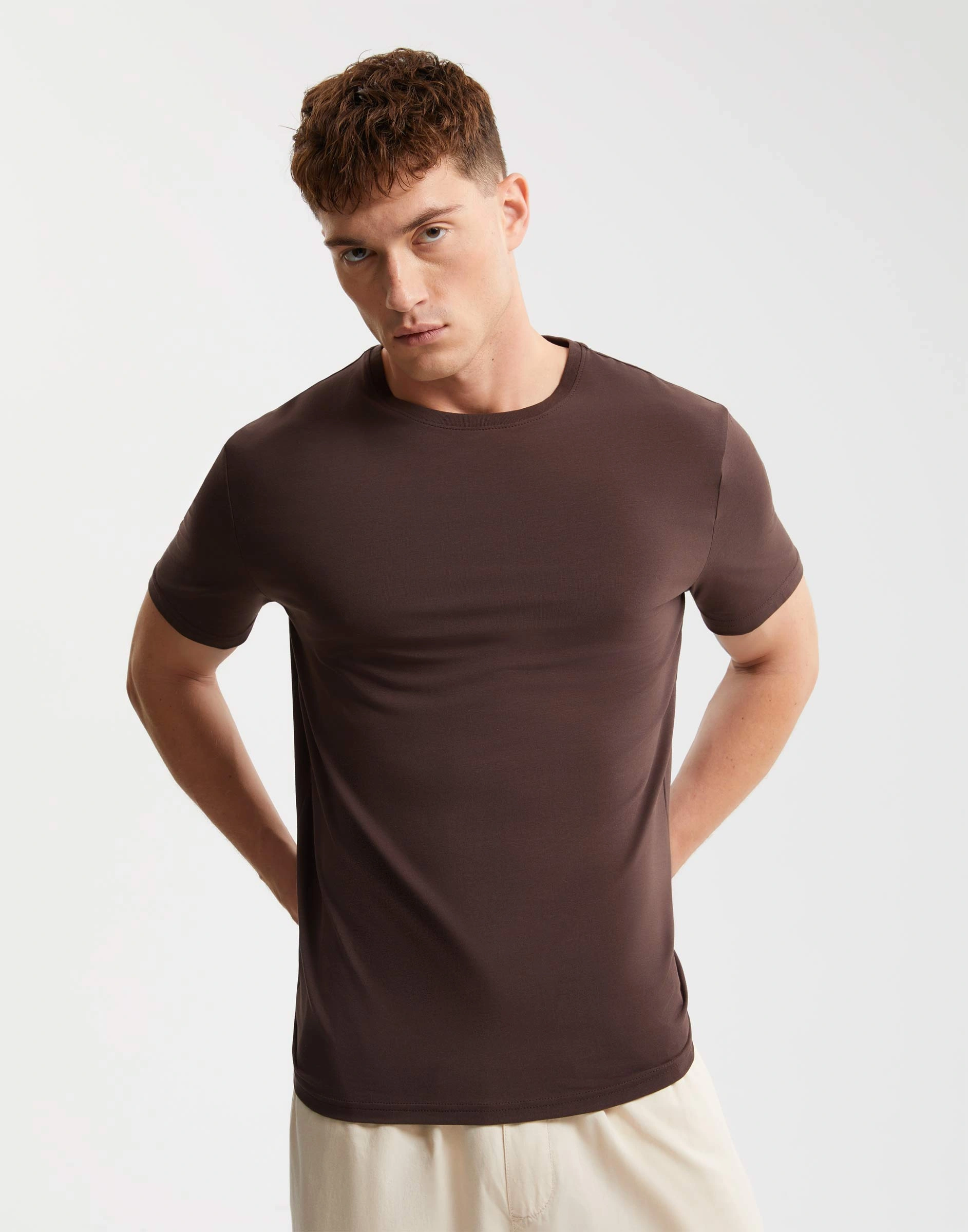 Тёмно-коричневая базовая футболка Slim из тонкого джерси Bkt017193-4