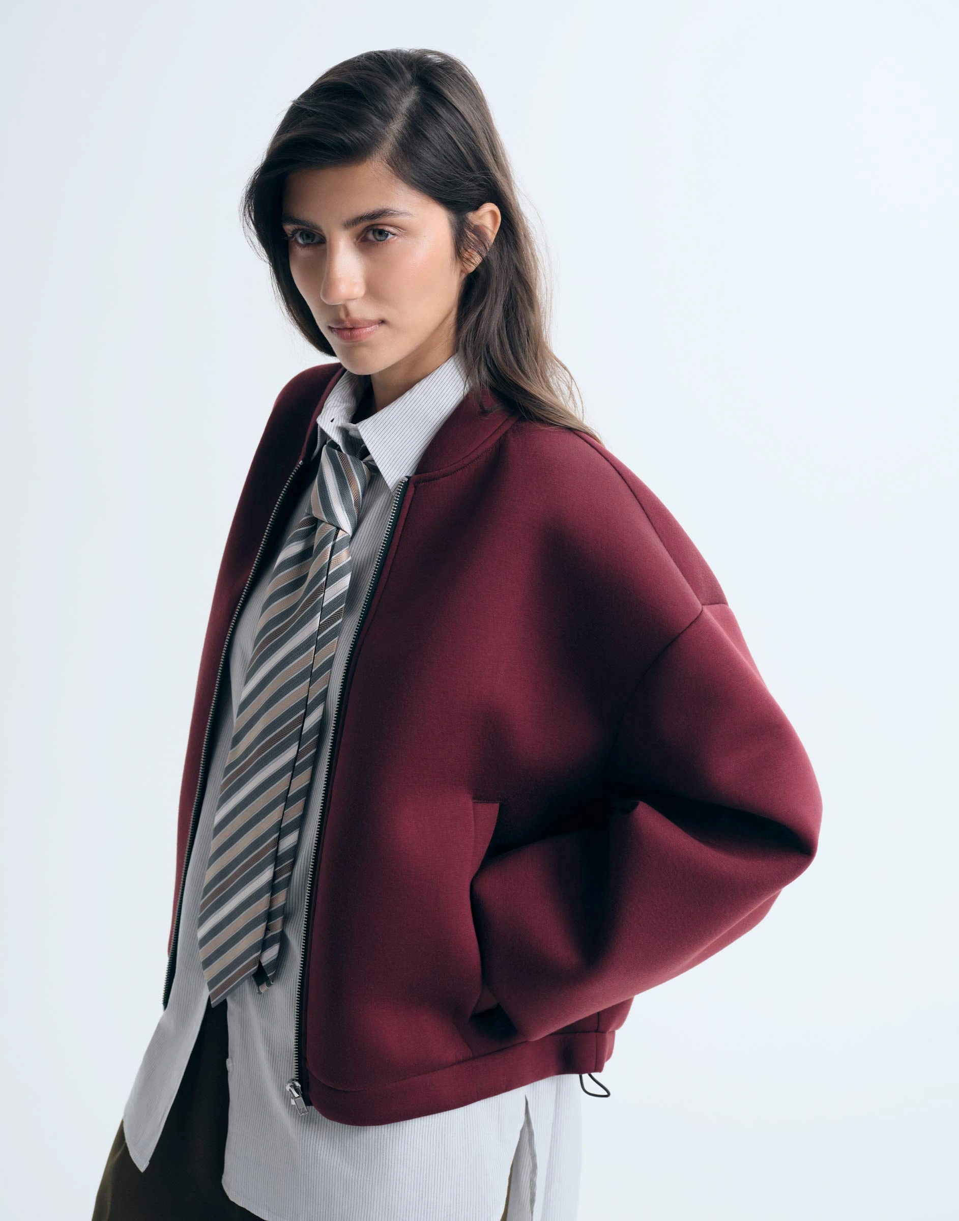 Бордовый бомбер-трансформер superoversize из скубы Gac025101-1