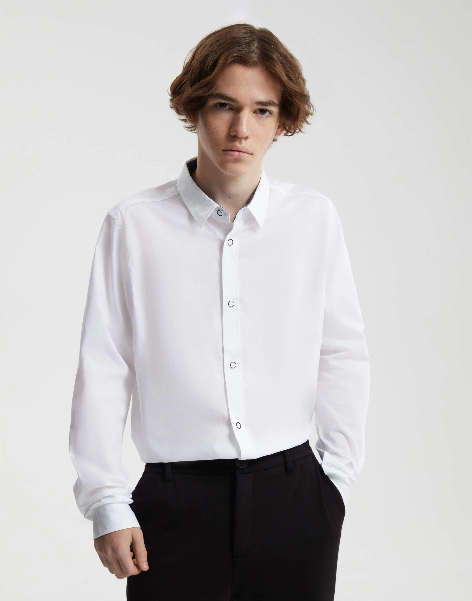 Белая школьная рубашка с жаккардовым рисунком Bsu000440-1