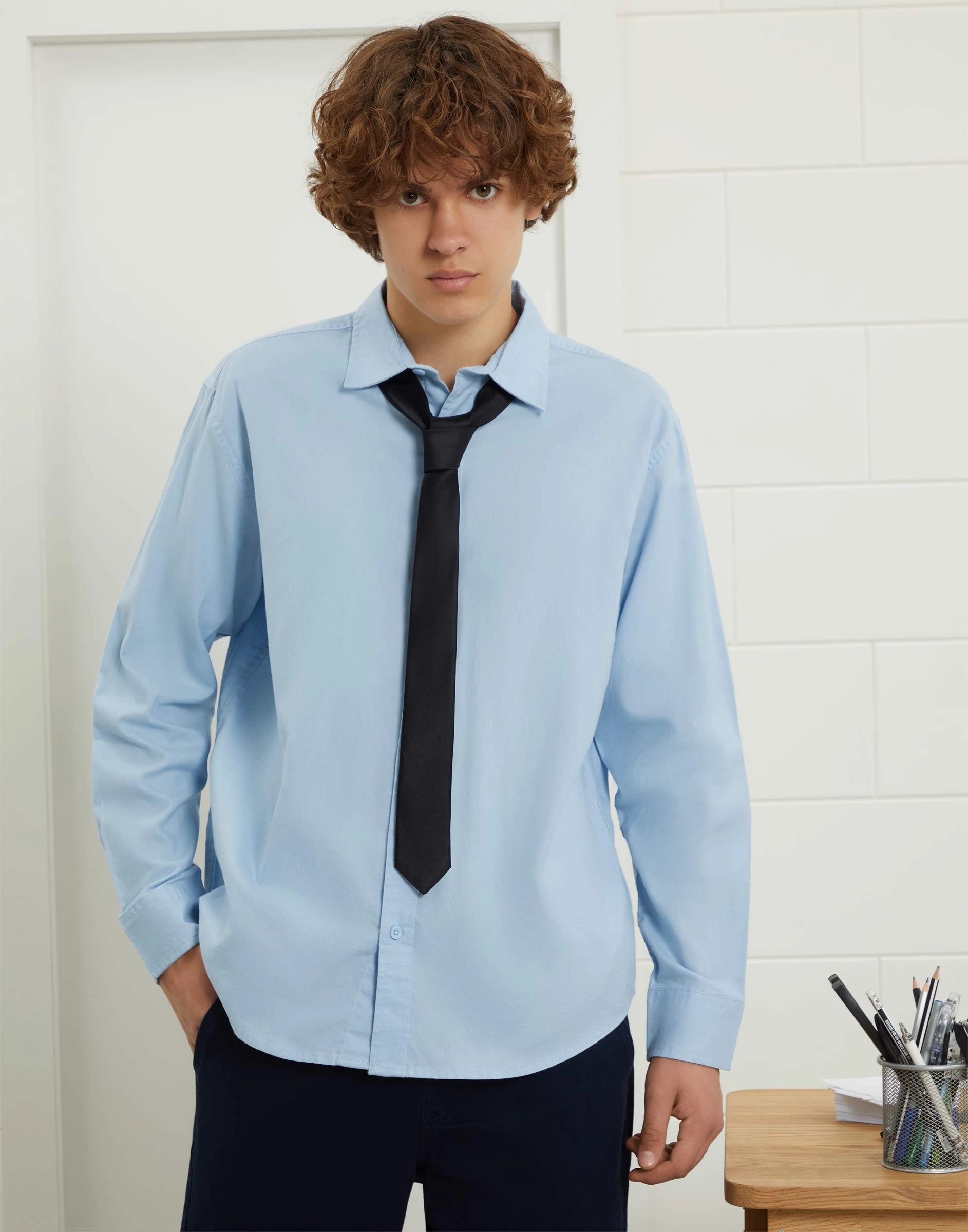 Голубая школьная рубашка из твила Bsu000435-2