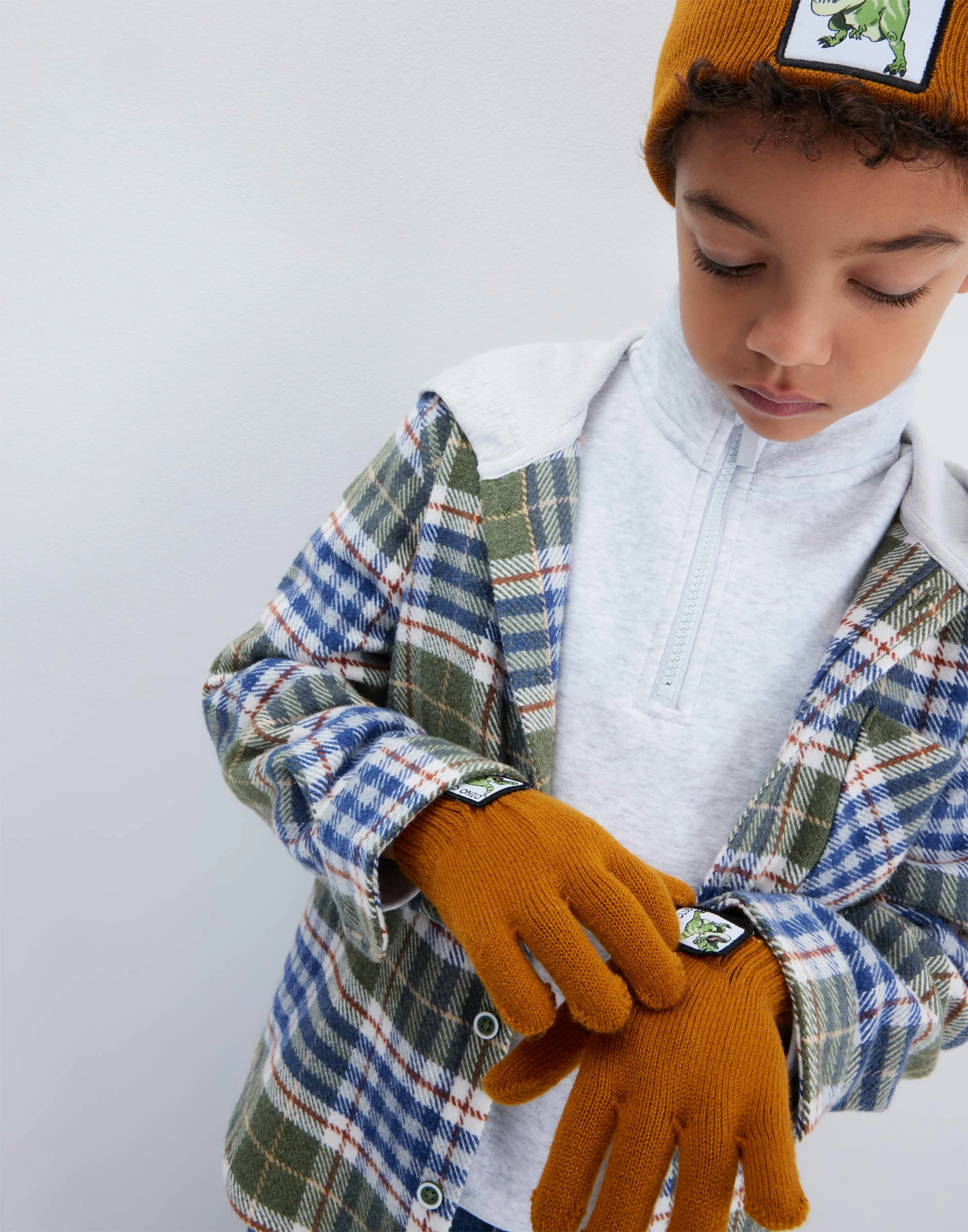 Горчичные перчатки с динозавром для мальчика Bas006358-1