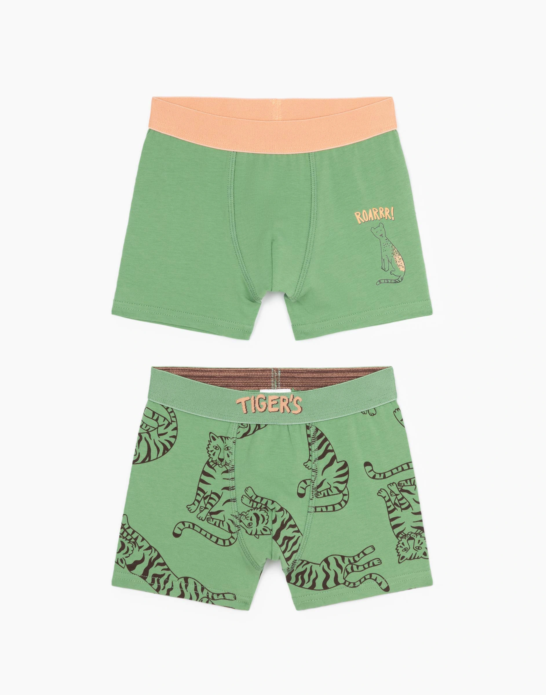 Зелёные трусы-боксеры с анималистичным принтом для мальчика 2 шт. Buw003955-1