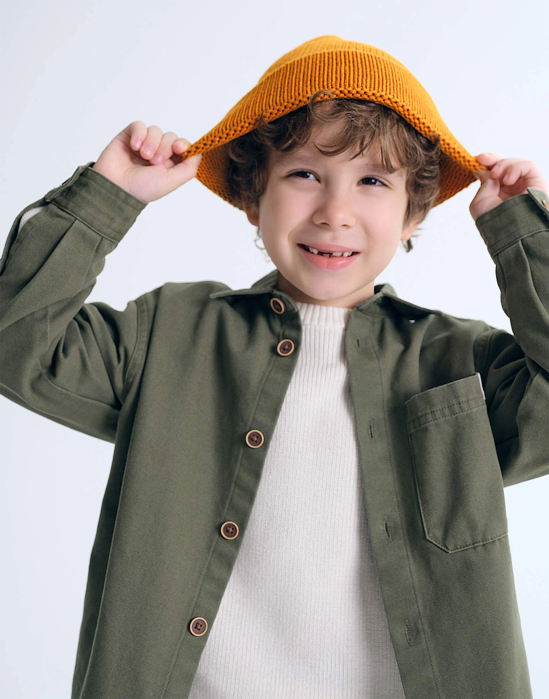 Хаки свободная рубашка с лейблом для мальчика Bwt002059-1