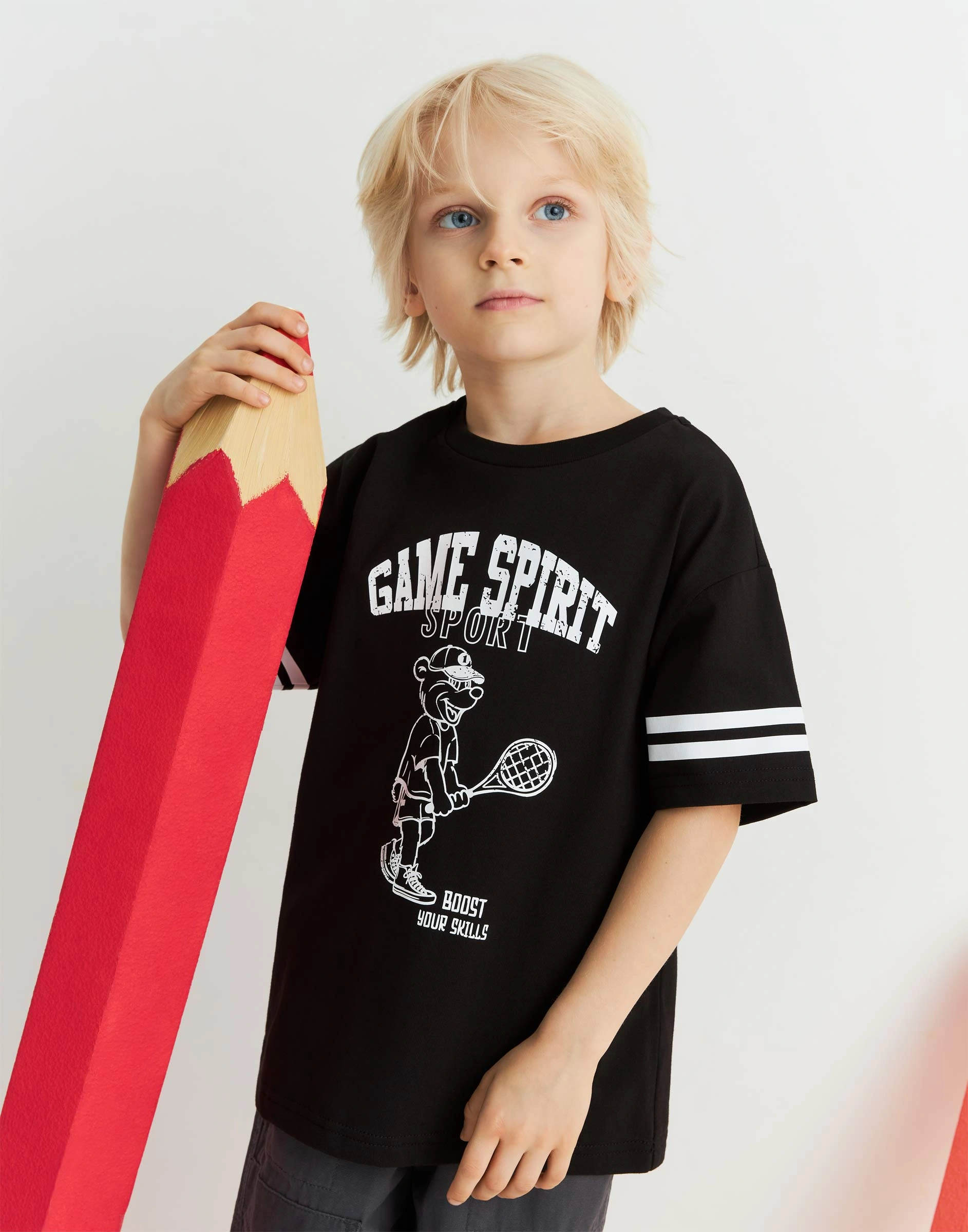 Чёрная футболка с принтом для мальчика Bkt016716-1