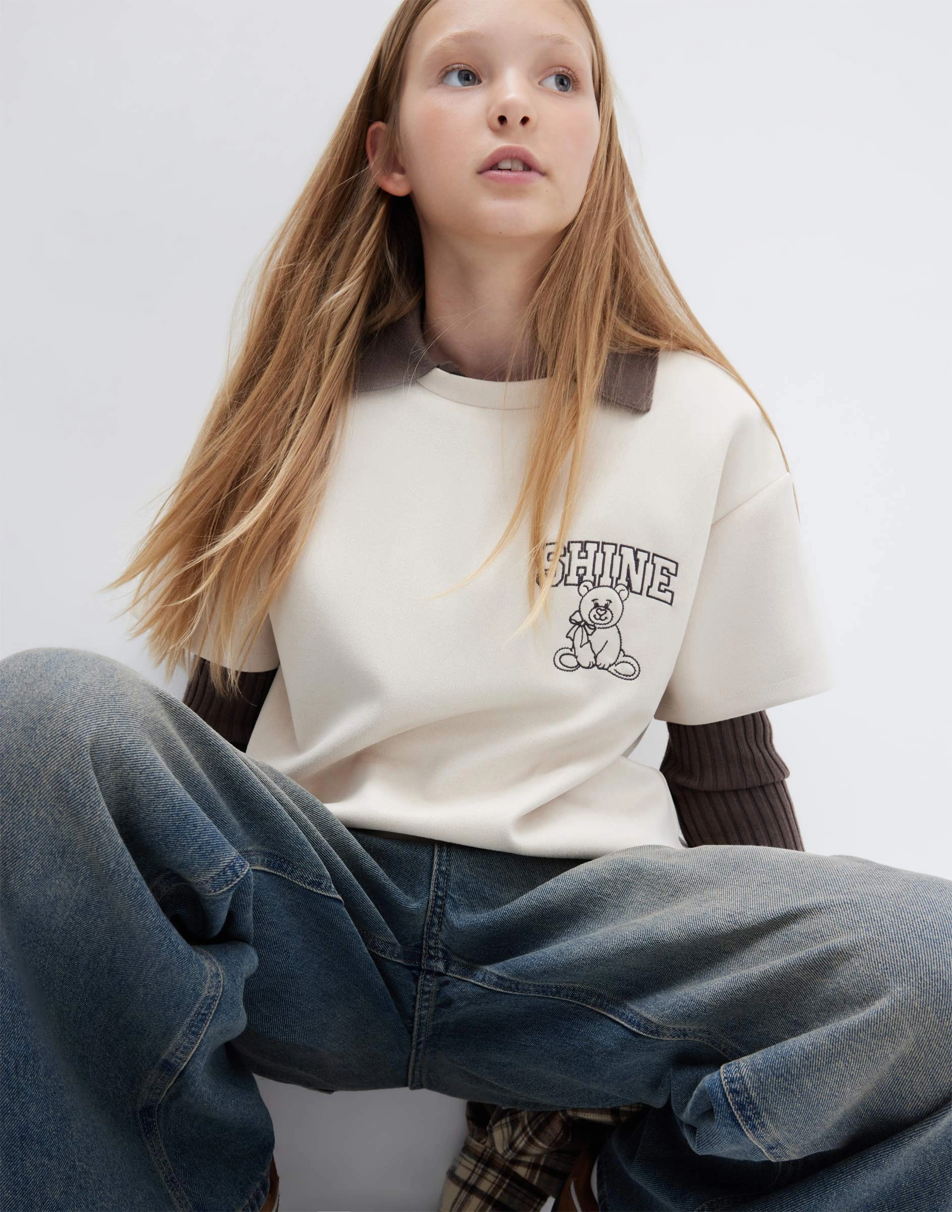 Бежевая футболка New comfort с вышивкой Gkt028177-2