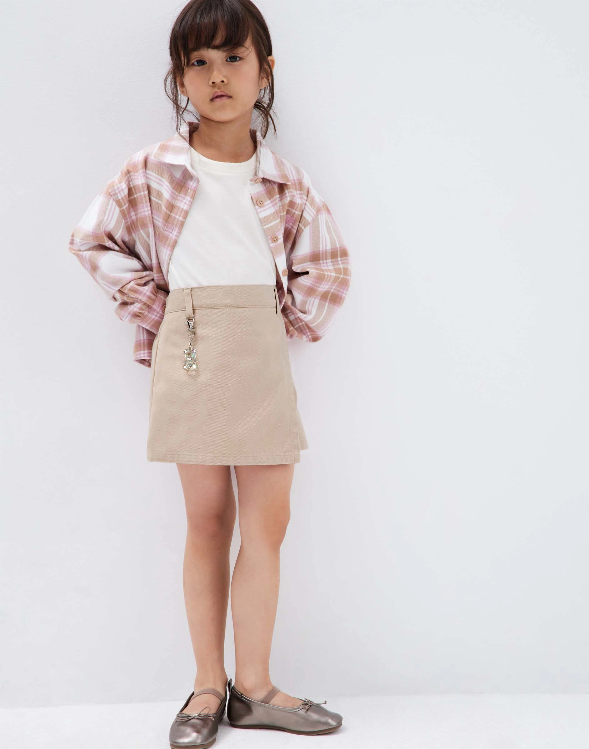 Бежевая юбка-шорты с брелоком для девочки Gsk020051-1