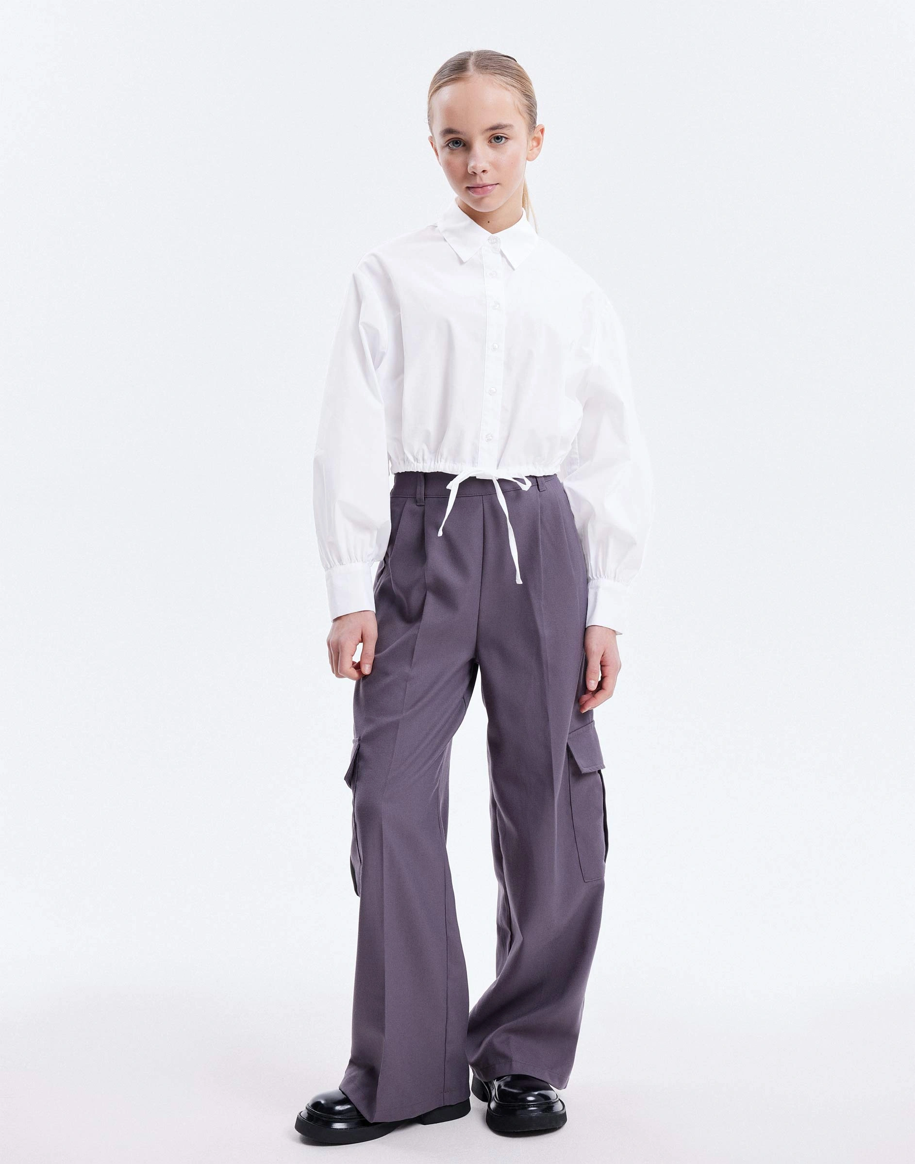 Белая школьная рубашка с завязками Gwt004674-1