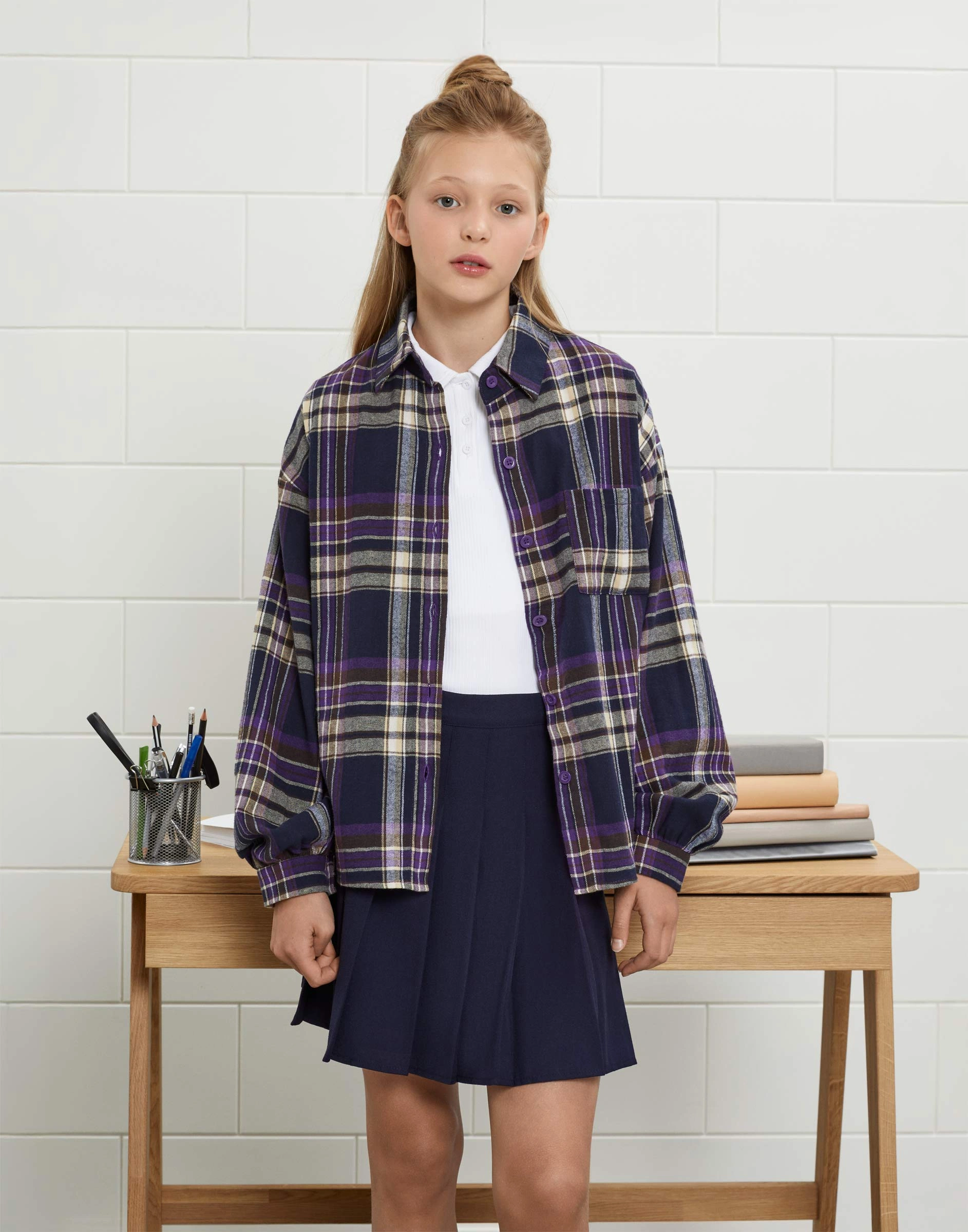 Клетчатая рубашка oversize с накладным карманом Gwt004070-1