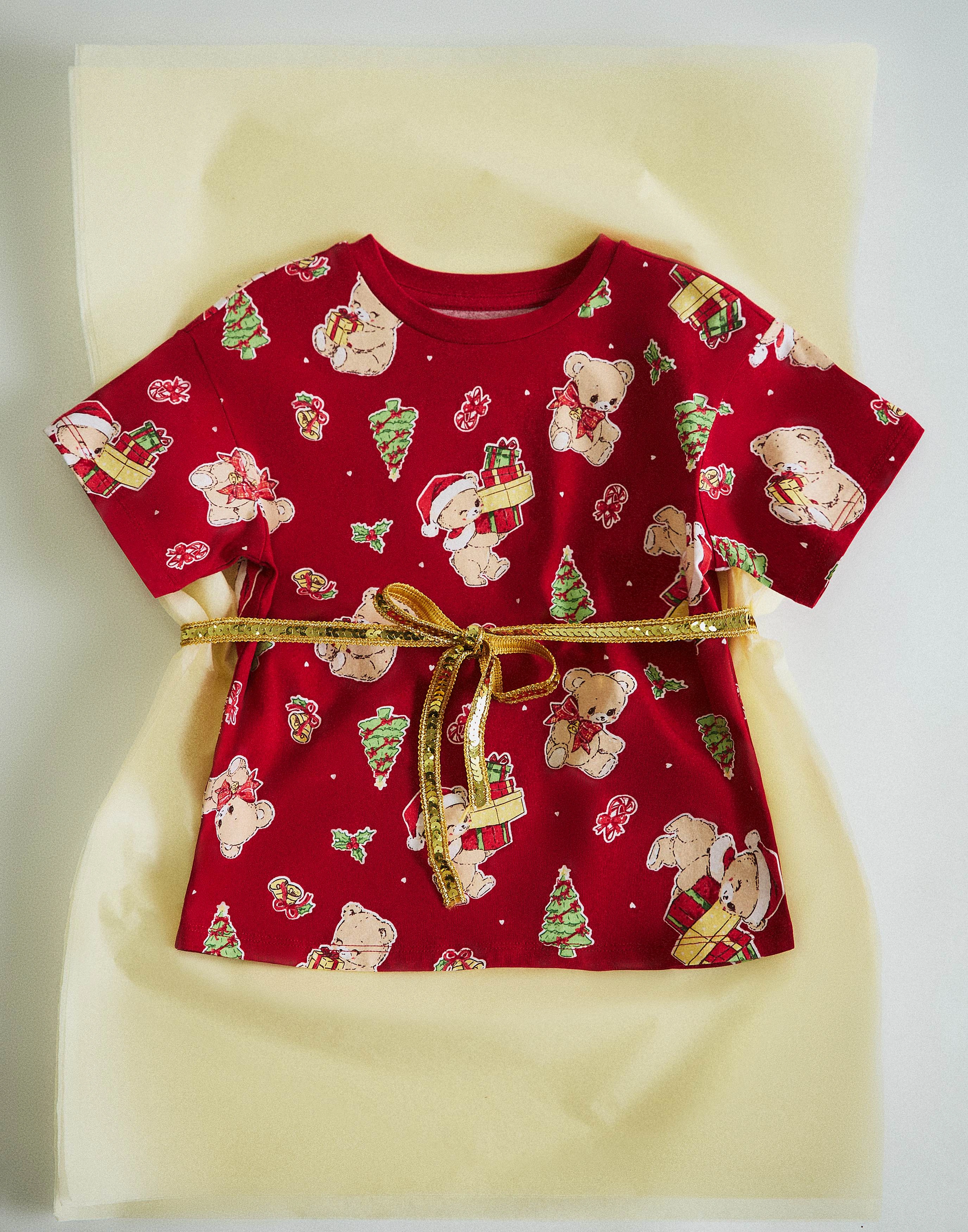 Красная футболка oversize с новогодним принтом для девочки Gkt028003-1