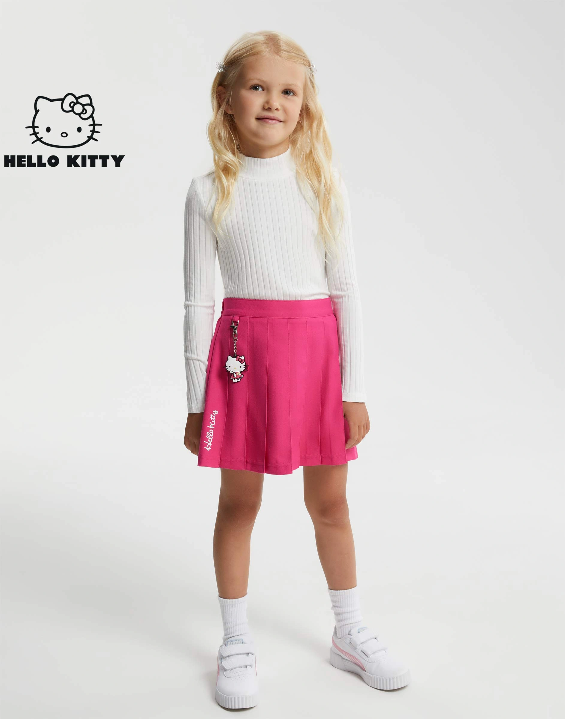 Малиновая плиссированная юбка с брелоком Hello Kitty для девочки Gsk020002-1