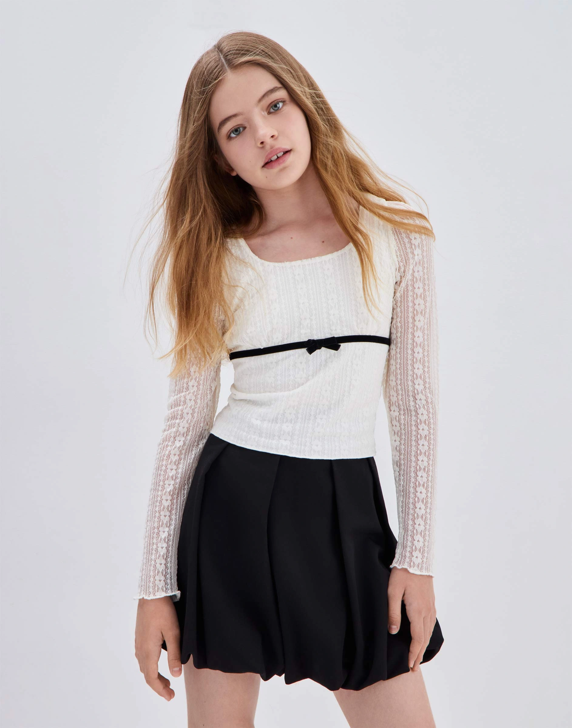 Молочный лонгслив из кружева с бантиком Gkt027628-1