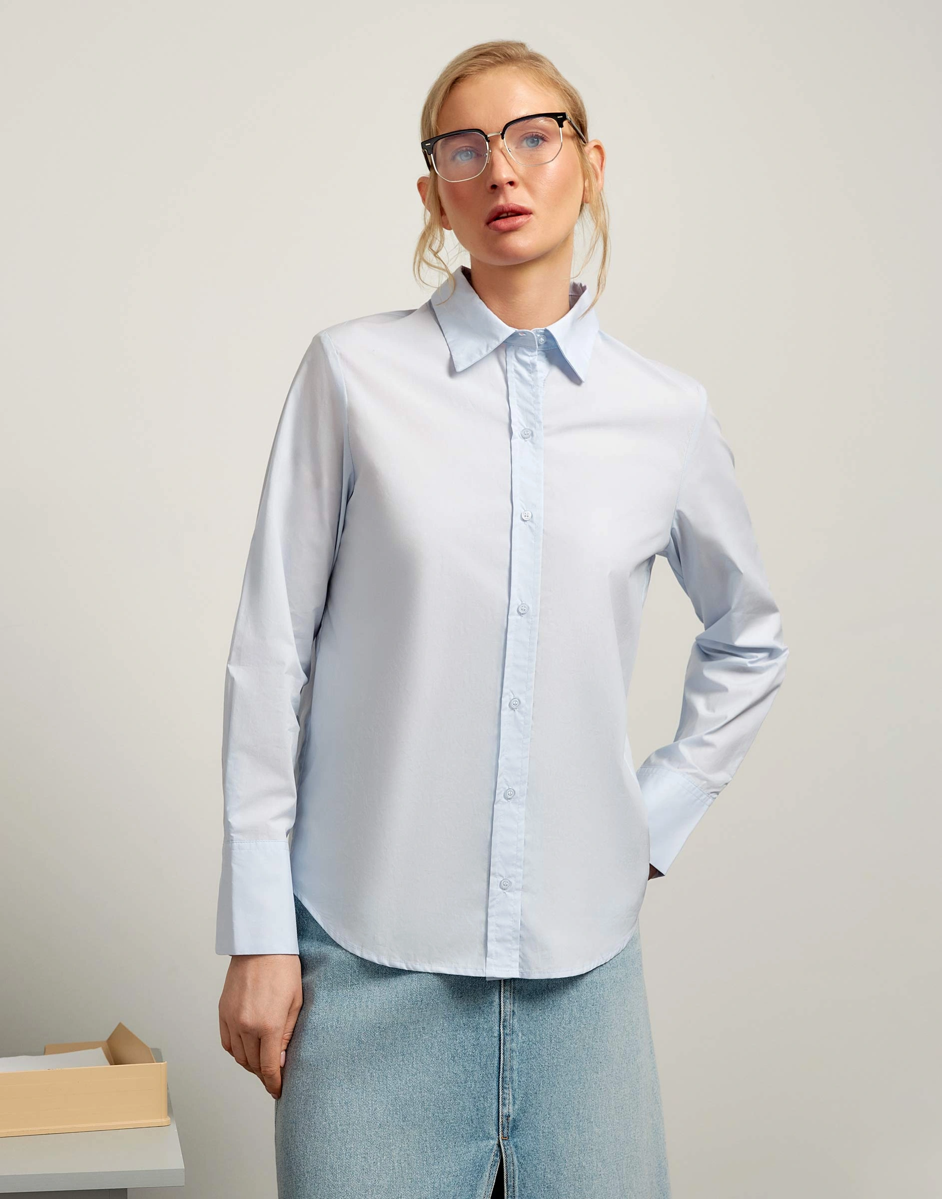 Голубая рубашка прямого кроя Gsu001347-2