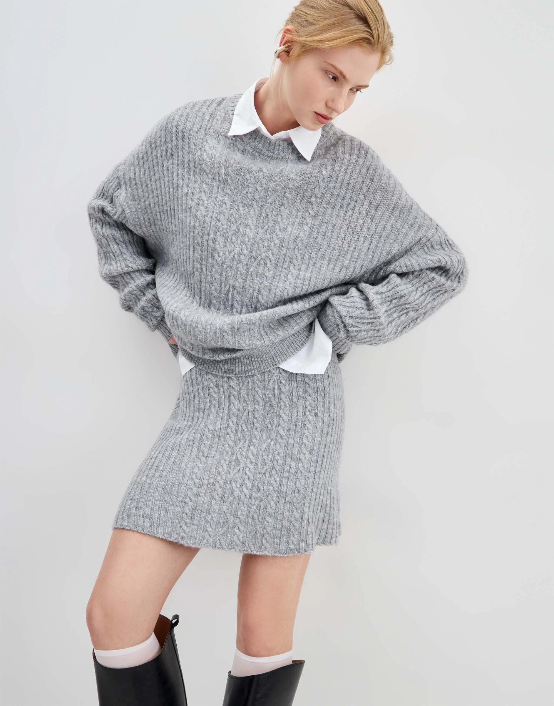 Серая вязаная мини-юбка с косами Gsk020367-1