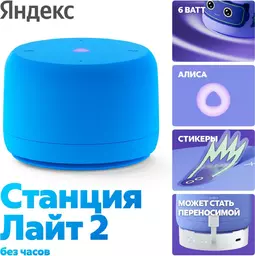 Умная колонка Яндекс Станция Лайт 2 с Алисой, без часов, 6 Вт, синий (Yndx-00028blu)