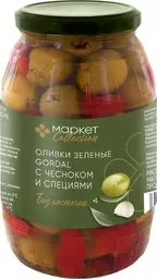 Оливки Gordal с чесноком и специями зелёные без косточки Market Collection, 800г