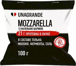 Сыр Unagrande Моцарелла протеиновый в воде чильеджина безлактозный 32%, 100г