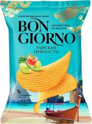 Чипсы Bon Giorno из натурального картофеля рифленые со вкусом тайских пряностей, 120г