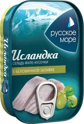 Сельдь Русское Море Исландка филе-кусочки тихоокеанская слабосолёная в беловинной заливке, 115г