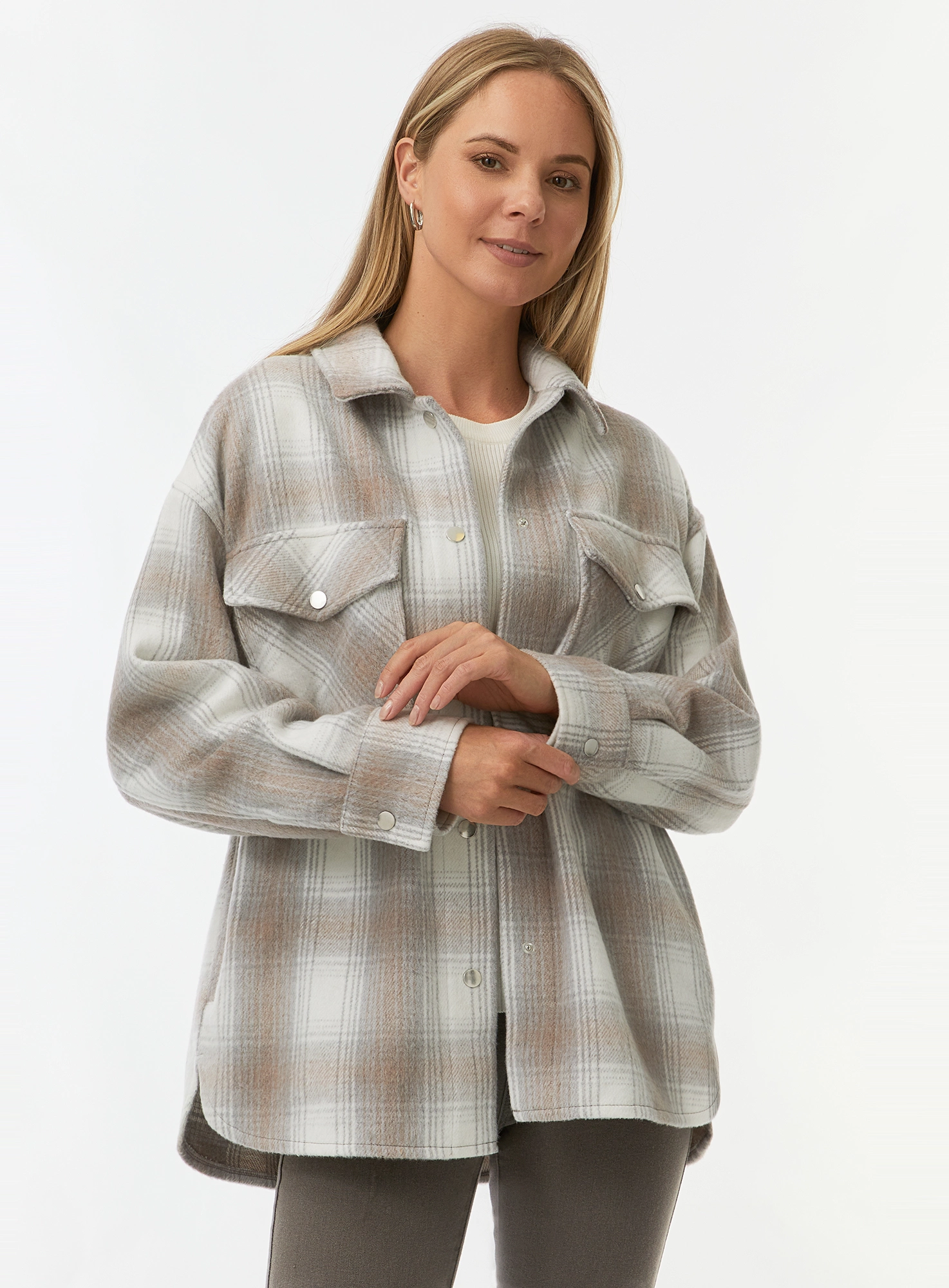 Куртка-рубашка в клетку с нагрудными карманами
