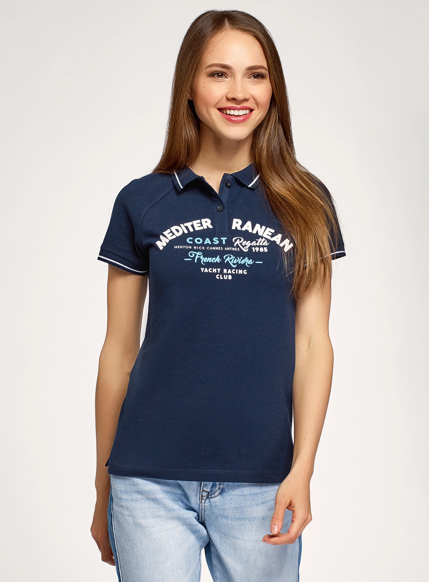 Поло из ткани пике с рукавом реглан