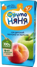 Сок детский Фрутоняня Яблоко и персик без сахара с 5 месяцев, 200мл