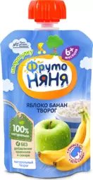 Пюре фруктовое детское Фрутоняня Яблоко, банан и творог с 6 месяцев, 90г