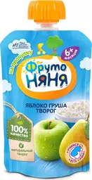 Пюре фруктовое детское Фрутоняня Яблоко, груша и творог с 6 месяцев, 90г