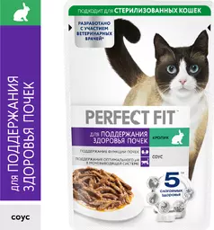 Корм влажный Perfect Fit для кошек здоровье почек с кроликом, 75г