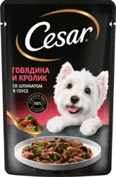 Влажный корм для собак Cesar с говядиной кроликом и шпинатом в соусе, 85 г