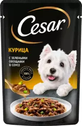 Влажный корм для собак Cesar с курицей и зелеными овощами в соусе, 85 г
