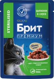 Влажный корм для стерилизованных кошек Брит Премиум с цыпленком кусочки в соусе, 85 г
