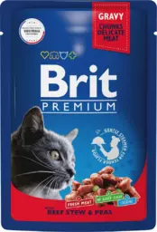 Корм для кошек Brit Premium рагу из говядины и горошком в соусе, 85 г