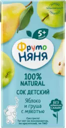 Сок Фрутоняня яблочно-грушевый с мякотью без сахара с 5 месяцев, 200 мл