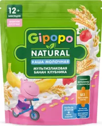 Каша сухая молочная детская Gipopo Мультизлаковая банана и клубника с 12 мес., 200 г