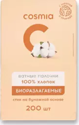 Ватные палочки Cosmia биоразлагаемые, 200 шт