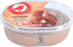 Мороженое молочное Ашан Красная птица Пломбир шоколадный с кусочками шоколада ванночка Гост Бзмж, 500 г