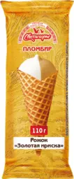Мороженое Свитлогорье двухслойное пломбир Золотая ириска в вафельном рожке 15% Бзмж, 110 г