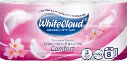 Туалетная бумага Whitecloud 3-сл цветная Тропический цветок/ Клубника 8рул (Окей)