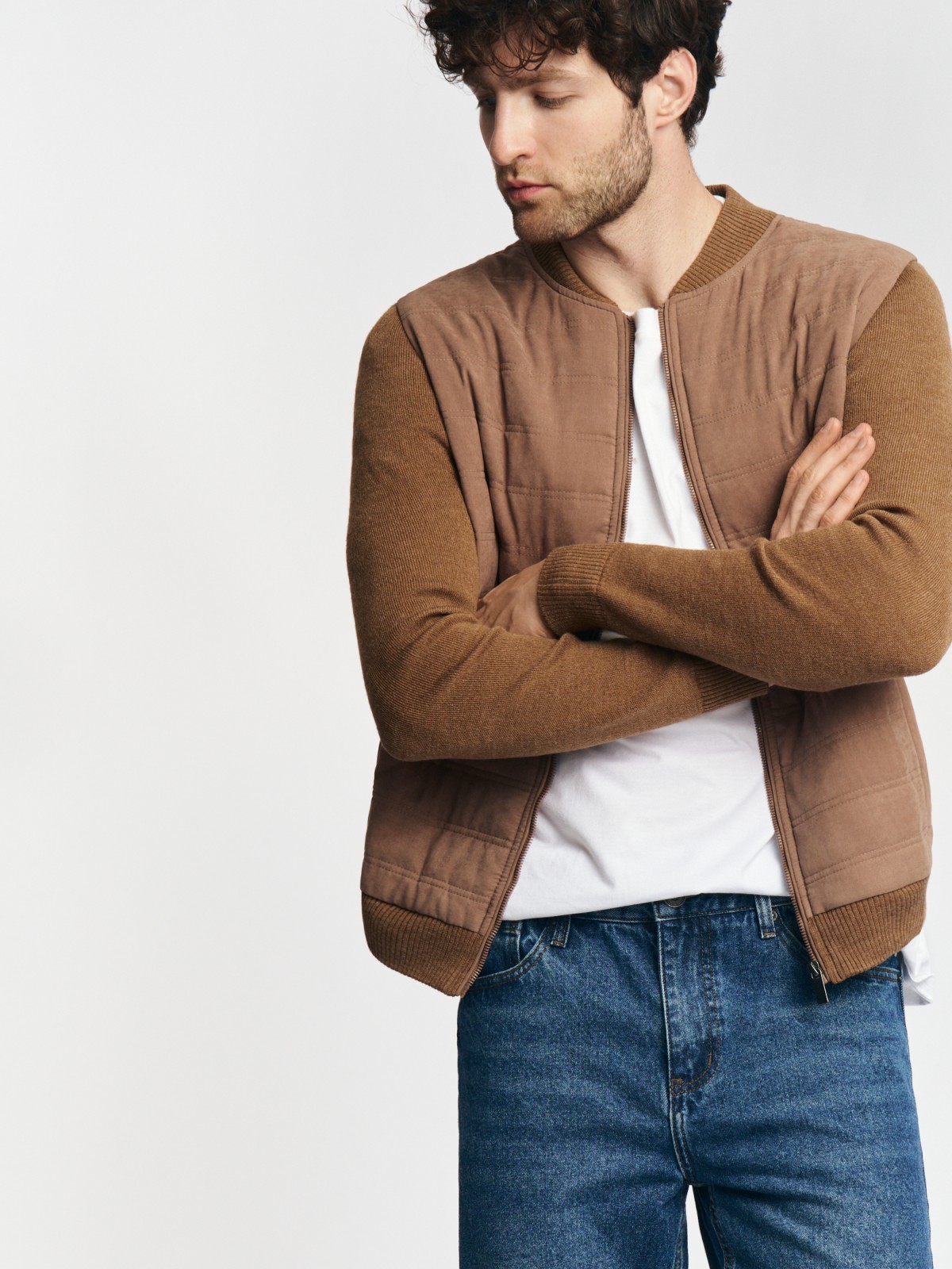 Утеплённая трикотажная толстовка-бомбер на молнии